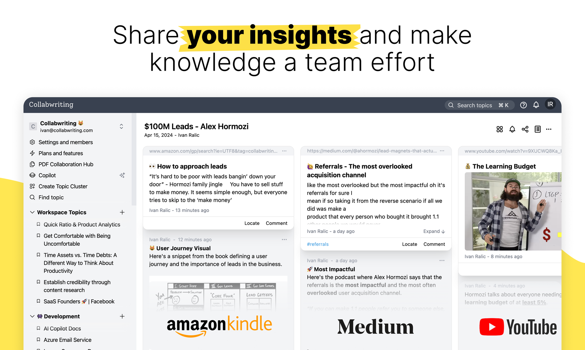 Collect, organize, and share your team’s insights effortlessly. With Cluing, every idea, note, and resource becomes instantly accessible, searchable, and actionable - turning scattered knowledge into real team power.
