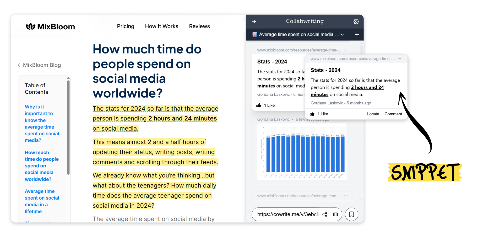 I @mention teammates to review snippets, add comments, or verify information.