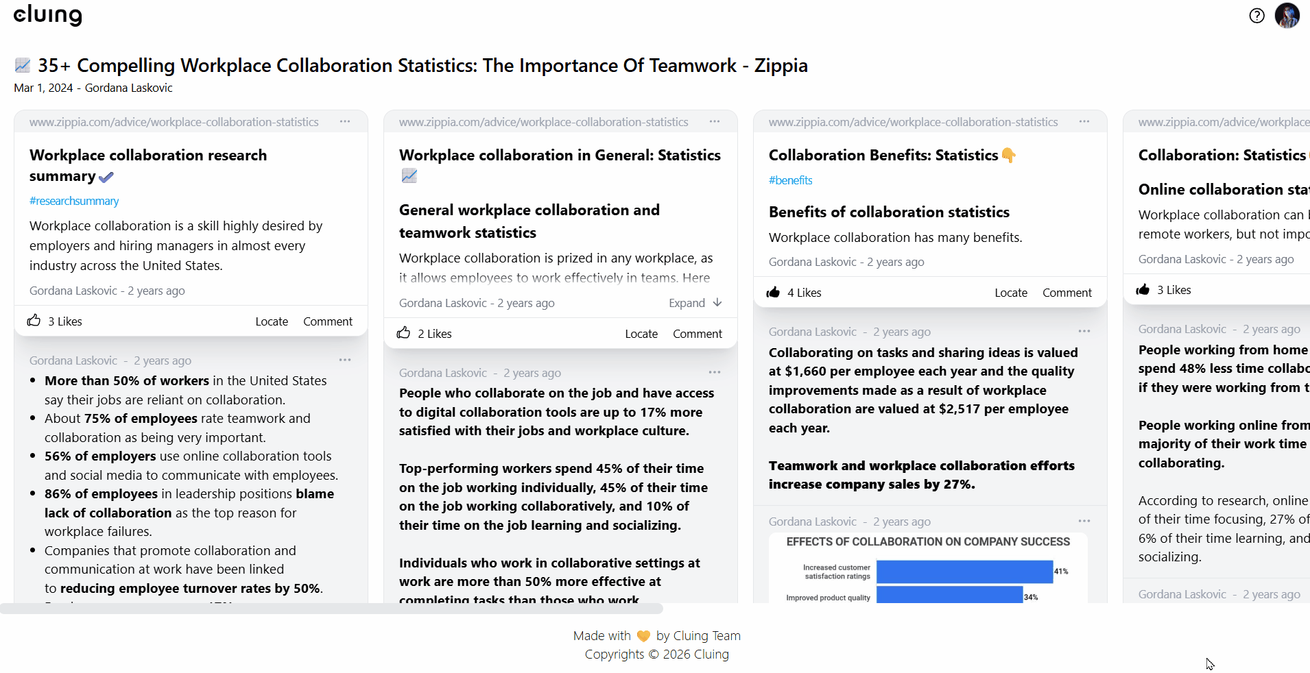 Stop losing time and miscommunication with your team and clients. Use Cluing to centralize insights, share PDFs, and collaborate in real-time, so your team and clients are always on the same page.