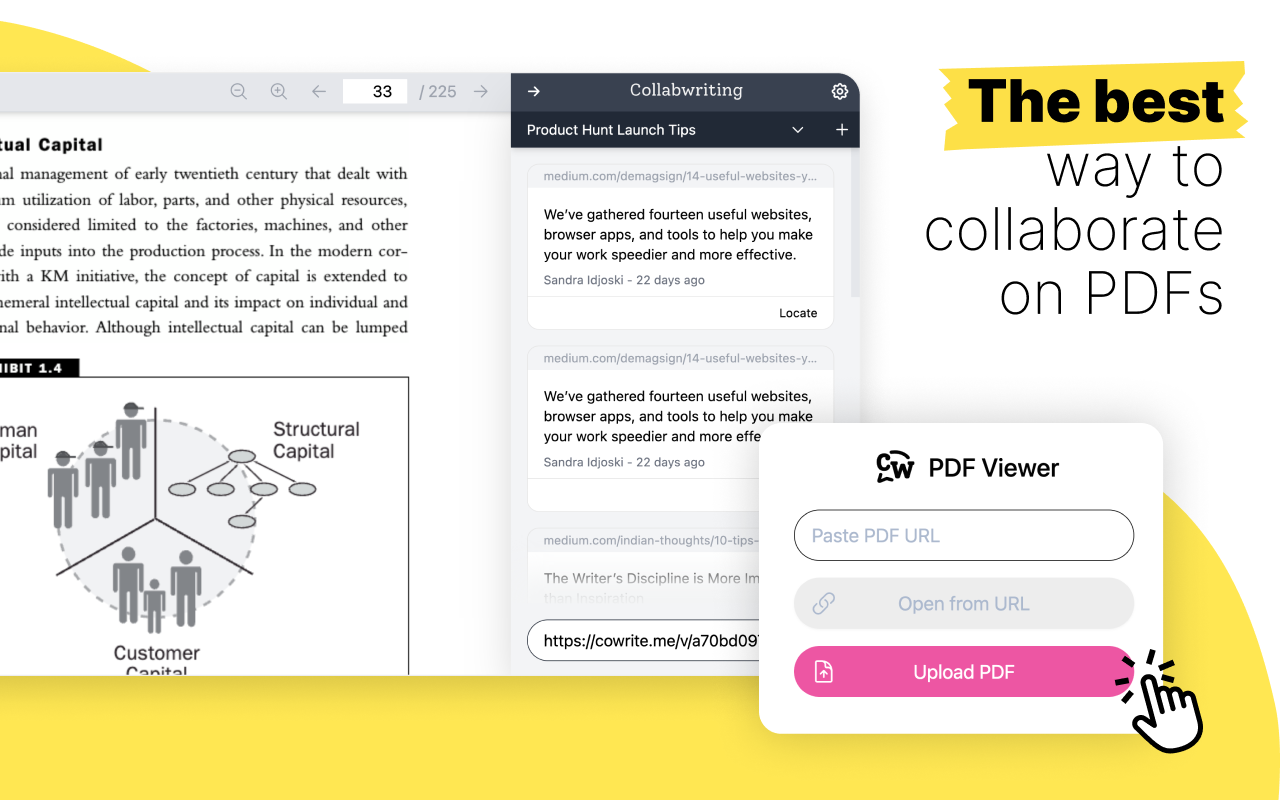 - Or, upload a PDF via your Collabwriting dashboard and highlight, comment, and share from there.