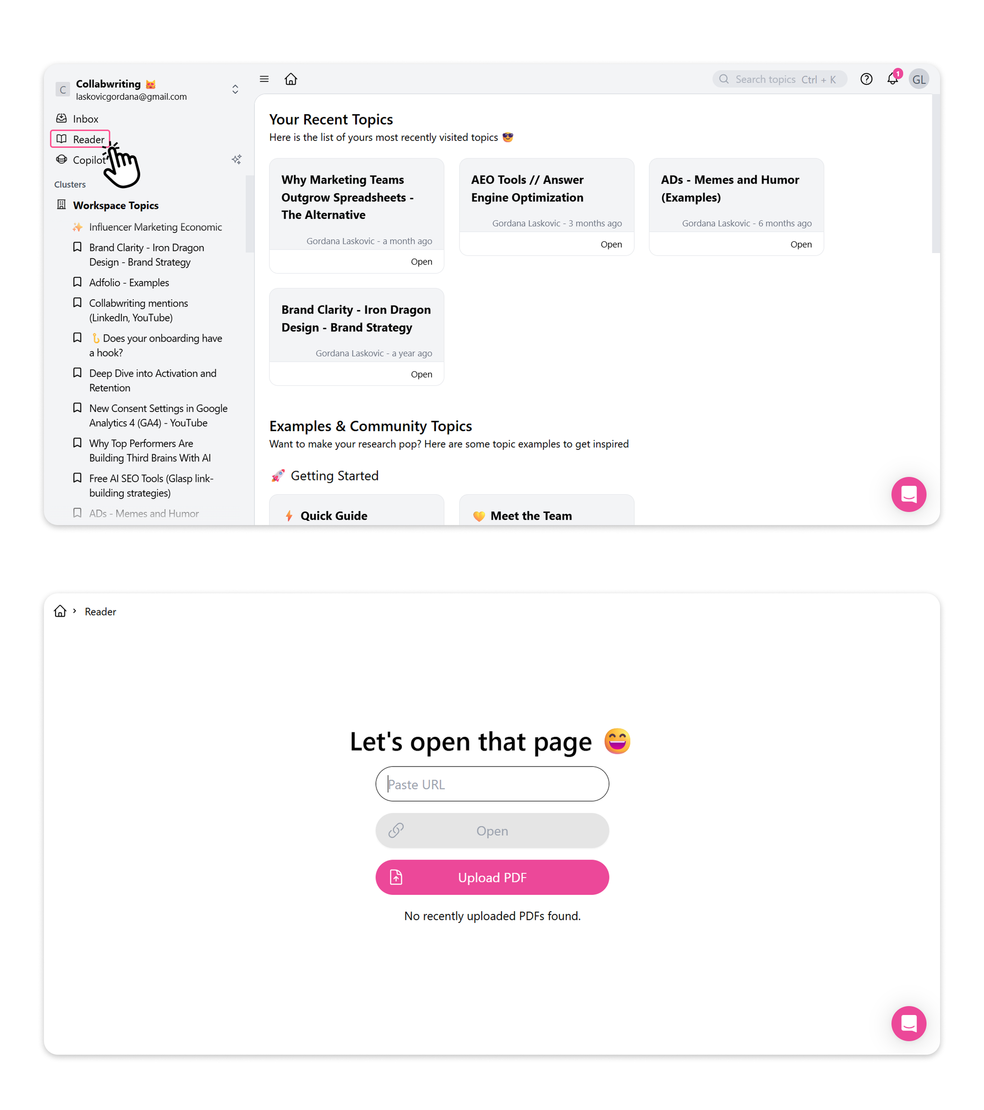Traditionally, you’d take screenshots of paragraphs, refine them with notes, organize everything into folders, and then spend 20 minutes crafting an email to share them with your team. By the time you hit send, half your day is gone.