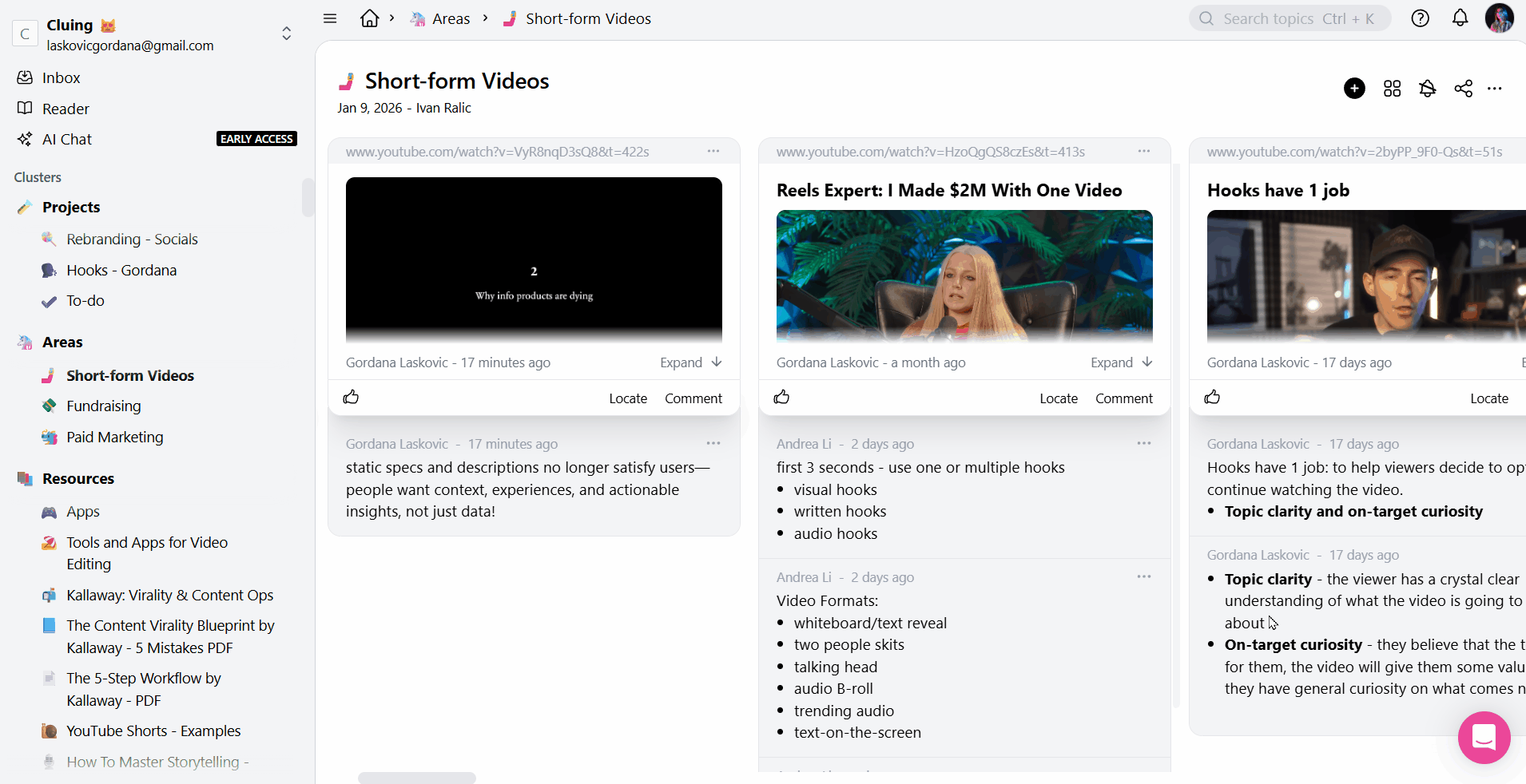 By capturing precise moments, adding context, and structuring them inside a system like Cluing, you transform long videos into actionable knowledge. And when AI is layered on top of that structured input, it becomes a multiplier for your thinking, not a replacement for it.
