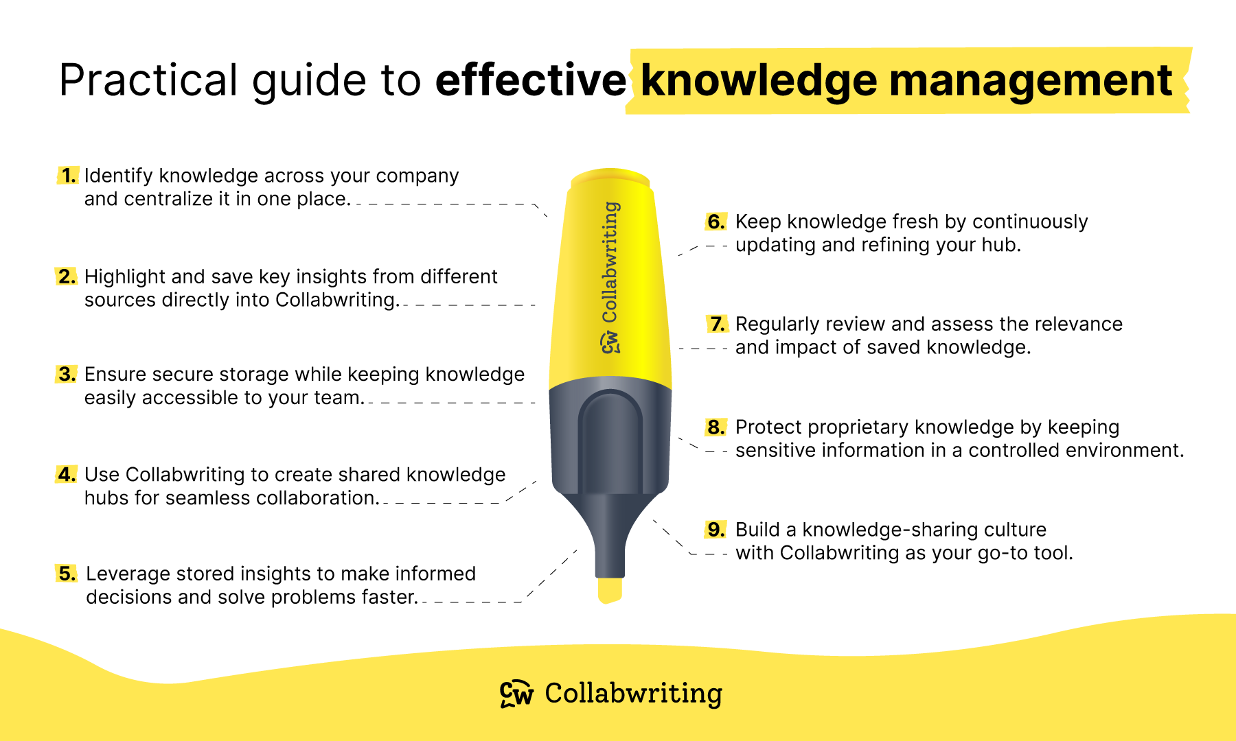 Using tools like knowledge bases, cloud storage, or platforms like Collabwriting can make this easier. The key is to organize the knowledge simply and intuitively for everyone who needs it.