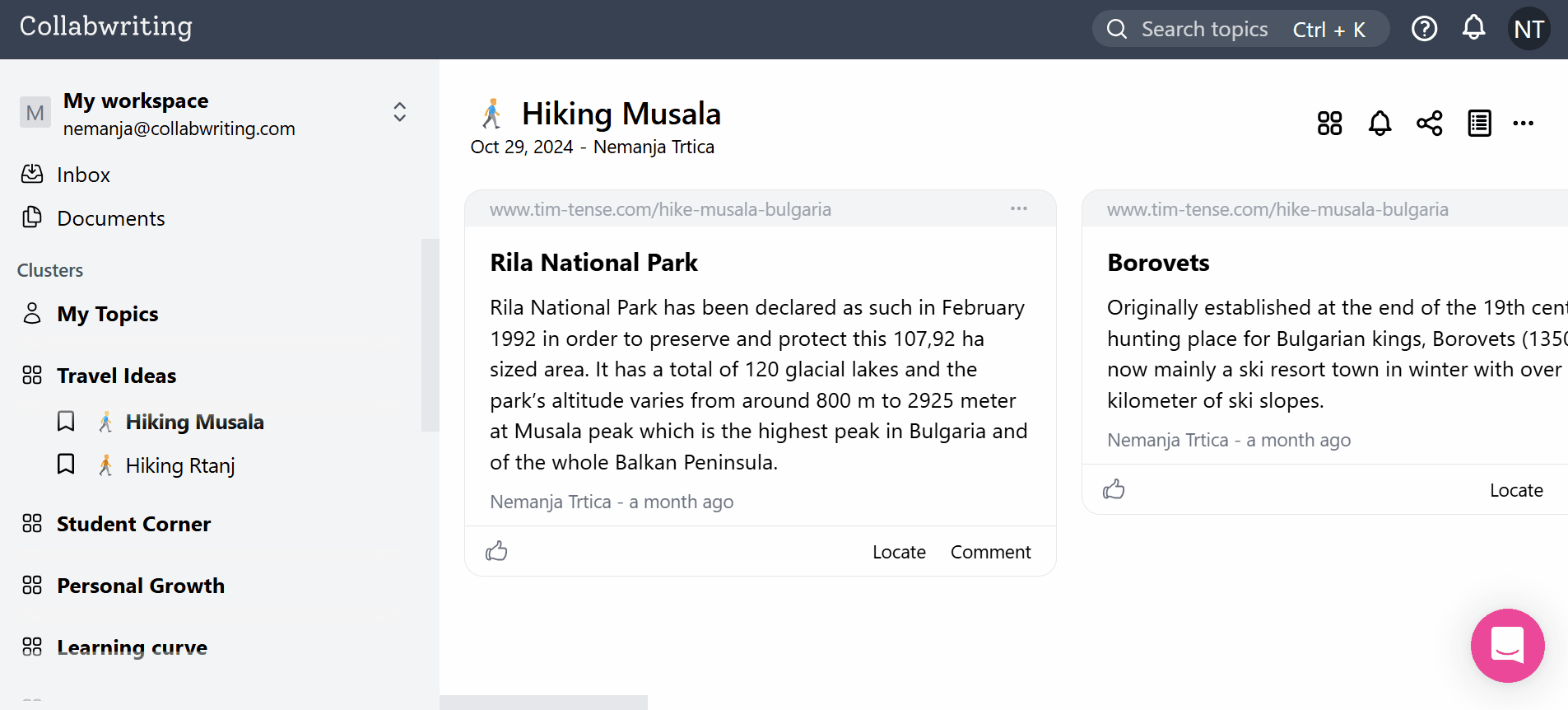 If Pocket was your digital bookshelf, Collabwriting is your research desk.