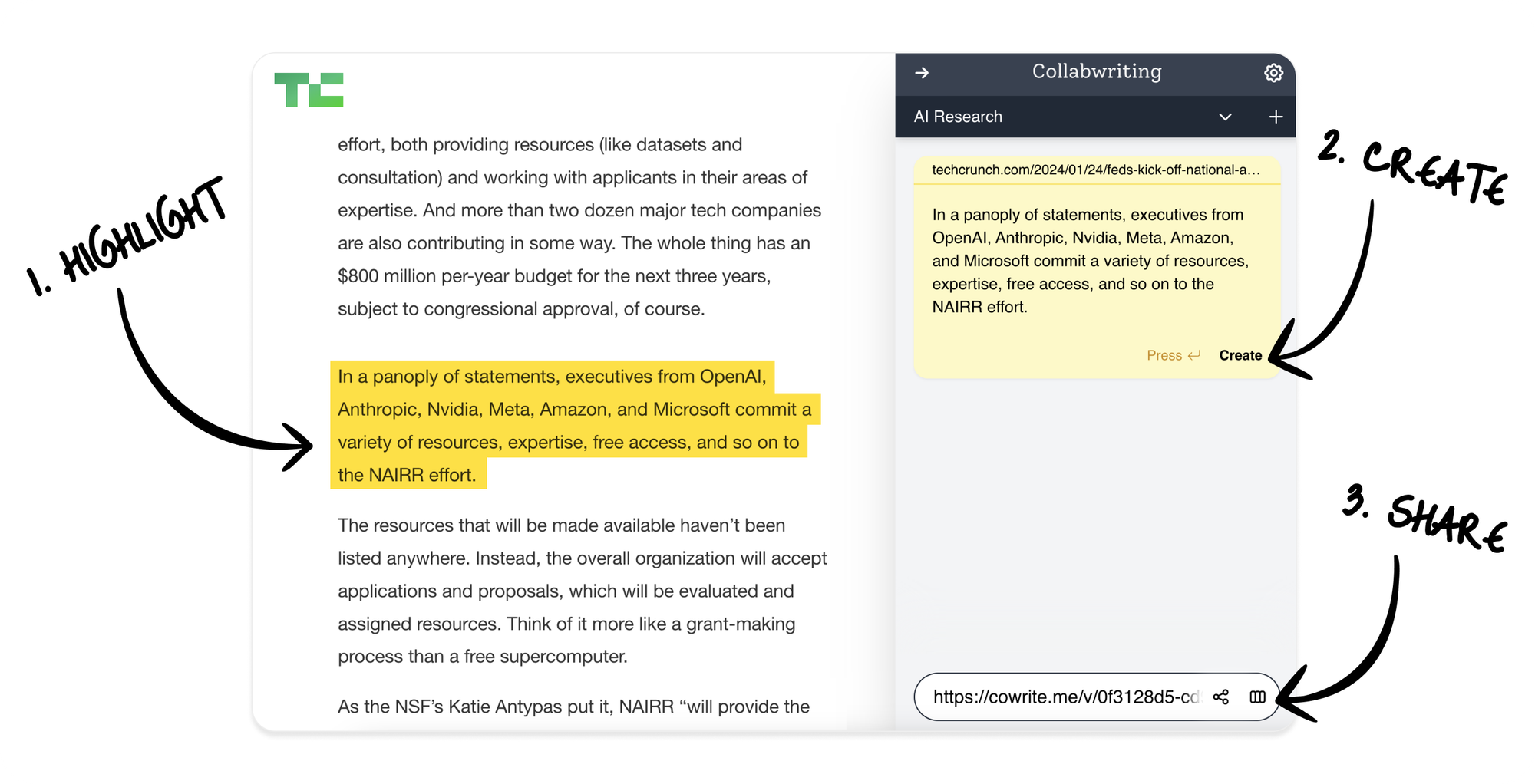Ever wish you could send someone just one paragraph from an article - so they know exactly where it came from, and you can collaborate on it together?