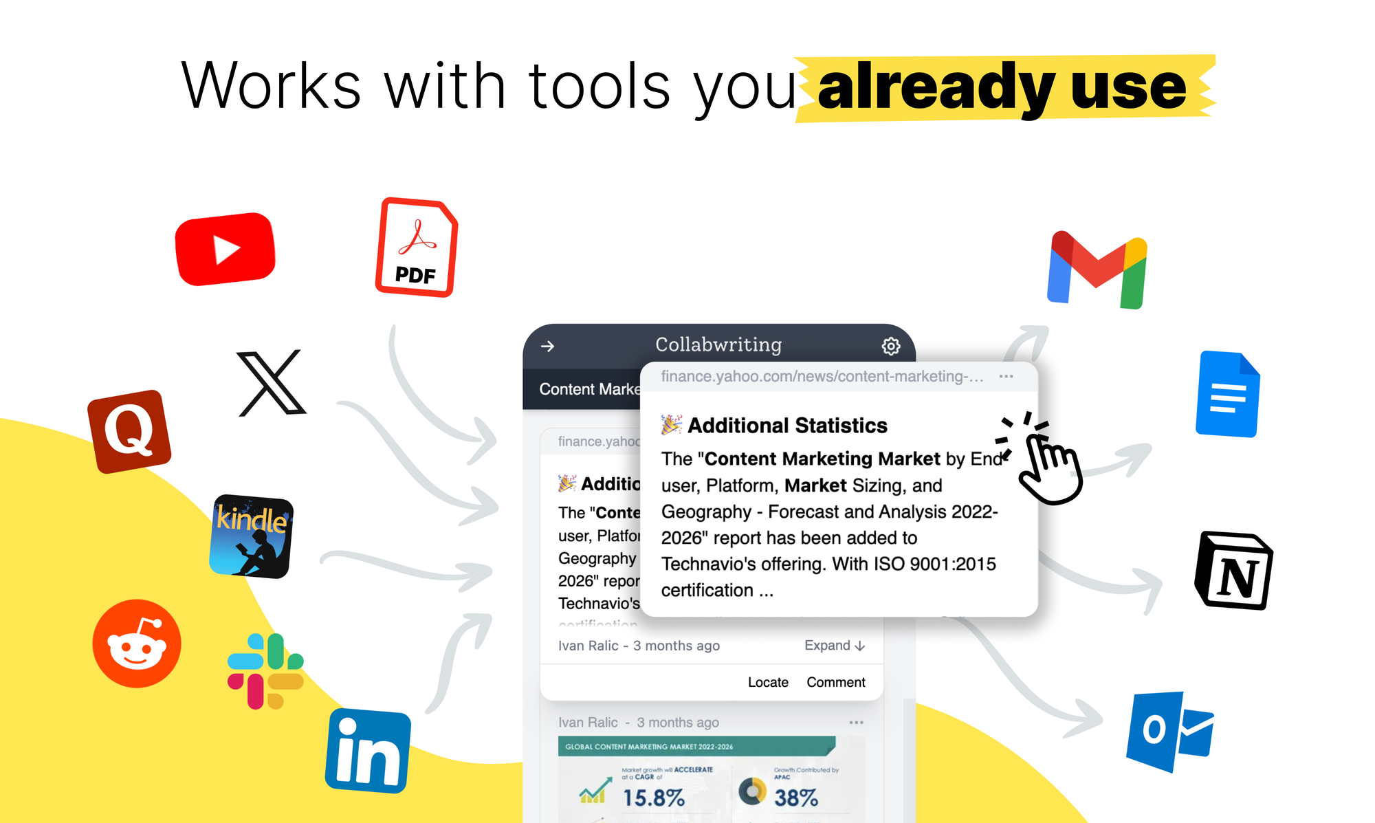 Just highlight, save, and collaborate with anyone on any content you find online.