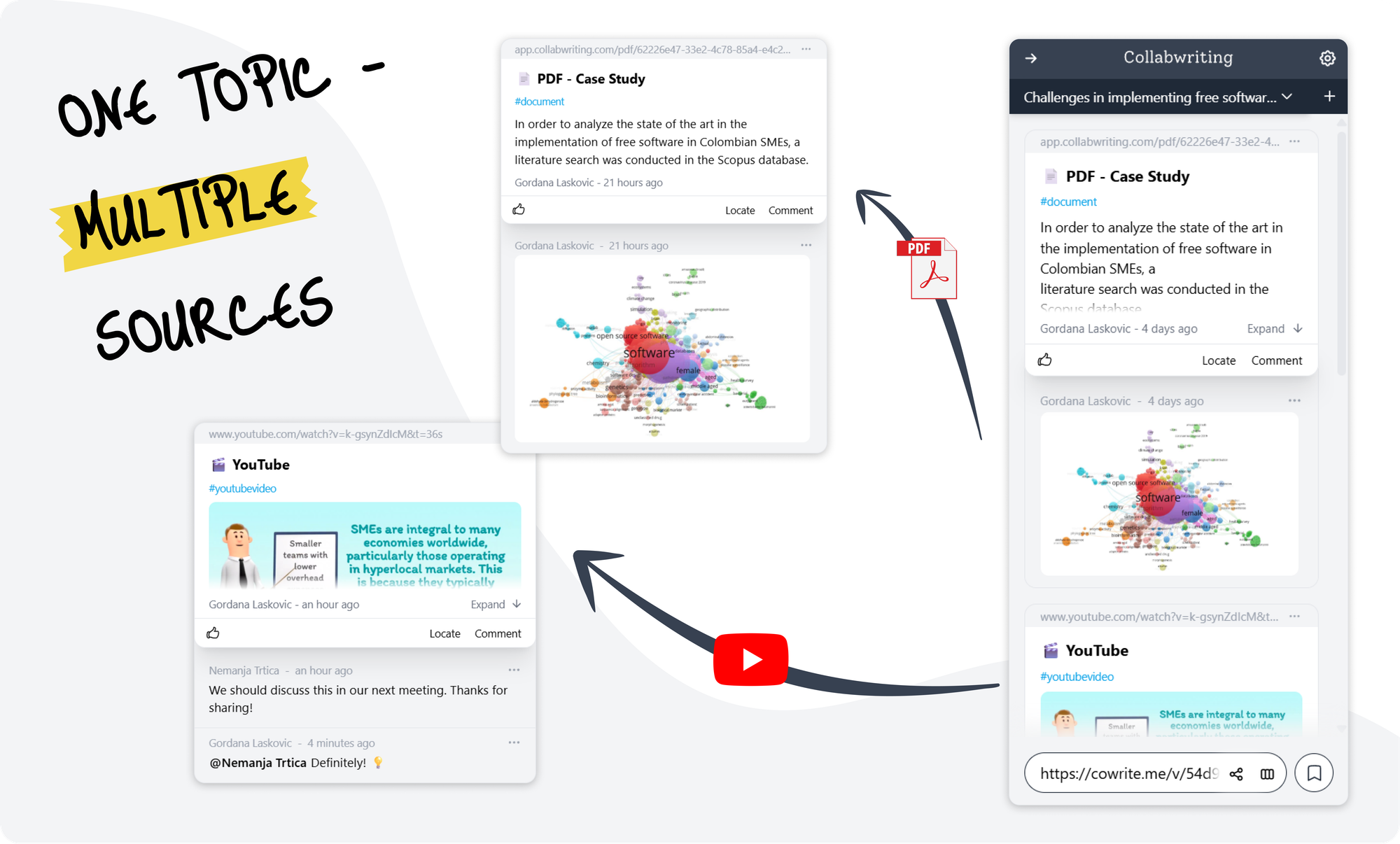 Yes! Cluing lets you save highlights and comments from articles, PDFs, and even YouTube videos - all in one place. Perfect for multi-format research or content workflows.